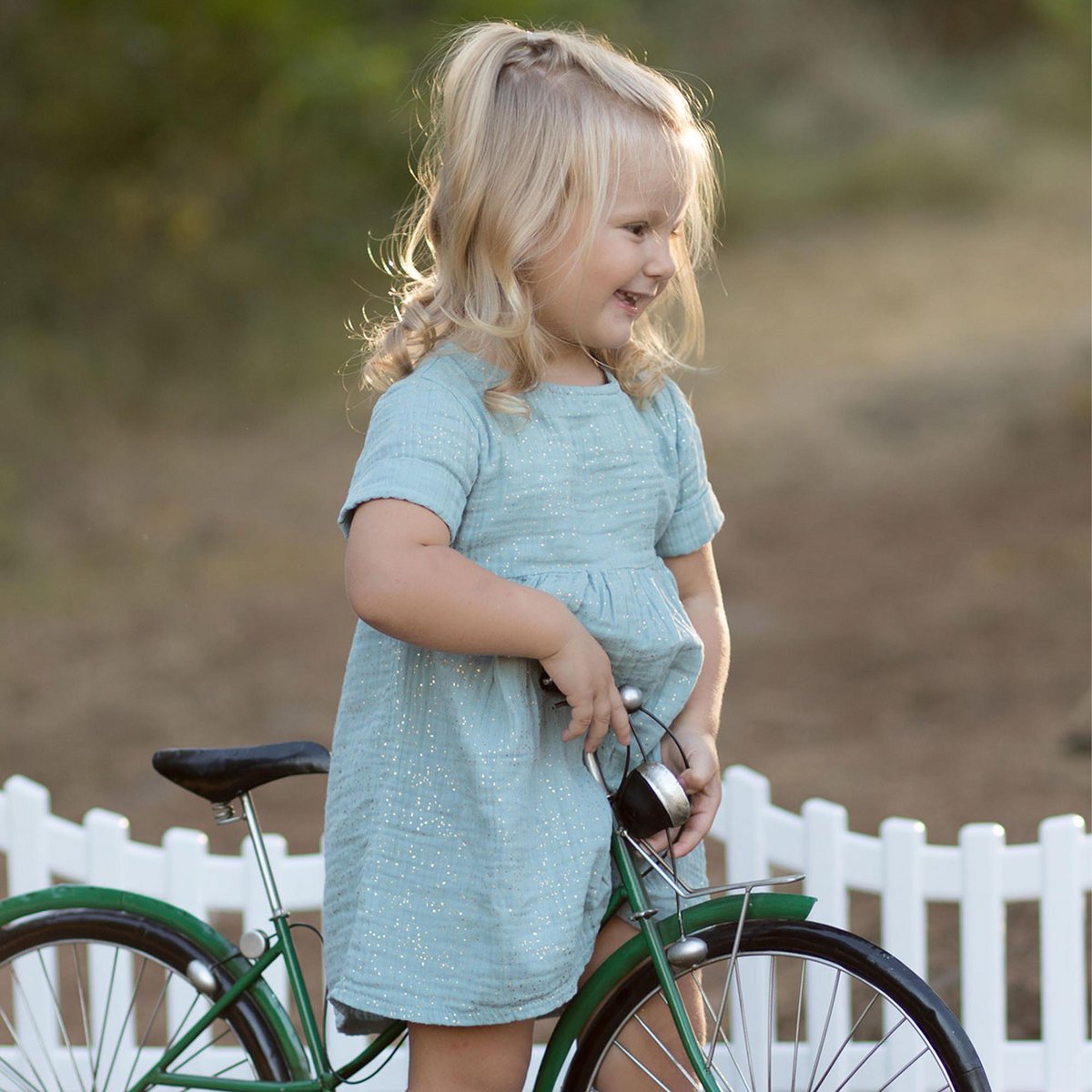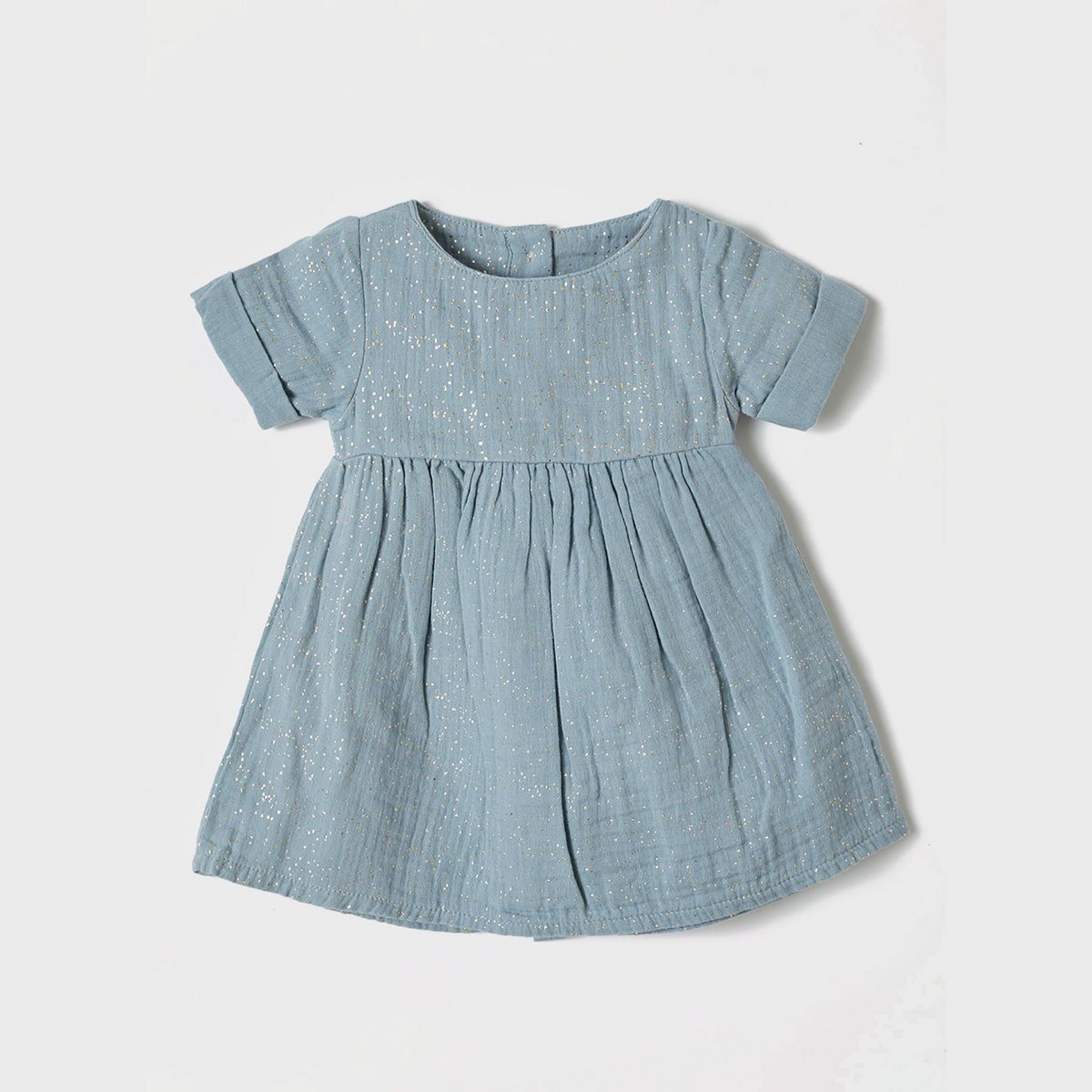 Add a touch of sparkle to your little one’s wardrobe with the OrganicEra Organic Muslin Short Sleeve Dress. Made from soft, breathable organic muslin, this dress is not only comfortable but also features a subtle glitter effect on the fabric, giving it a delightful shimmer without compromising on softness. Designed with short sleeves and a relaxed fit, this dress allows for ease of movement and is perfect for everyday wear or special occasions. The muslin fabric, crafted from 100% organic cotton, is gentle on delicate skin and free from harmful chemicals, ensuring comfort and safety. The beautiful aqua shade combined with the subtle glitter detail adds a playful touch to the dress. It becomes even softer with every wash, ensuring lasting comfort for your baby. Perfect for any occasion, this dress is a lovely addition to your child’s wardrobe.